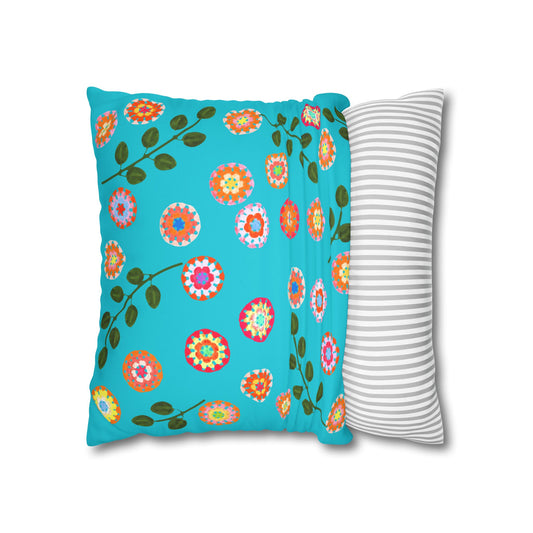 Corchet Floral Pattern Print Faux Suede Cushion Cover--Aqua Blue