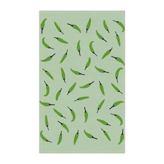 Chili Pepper Pattern Cotton Tea Towel — Green Kitchen Dish Towel
