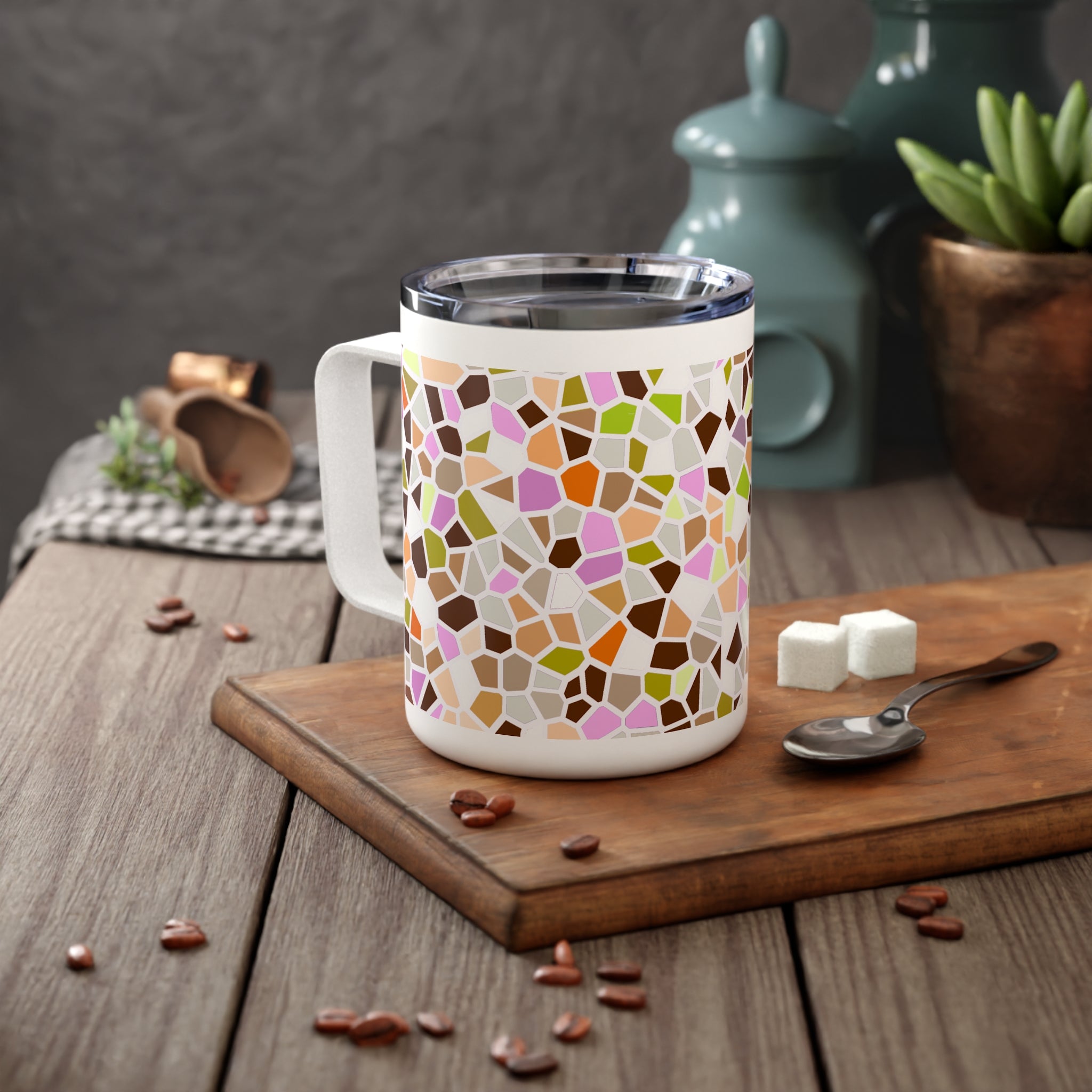 10oz Insulated Coffee Mug — Vibrant Mosaic Pattern