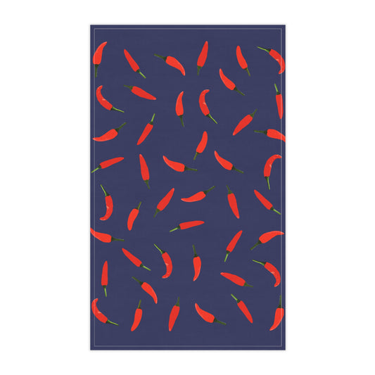 Chili Pepper Pattern Cotton Tea Towel — Navy Kitchen Dish Towel