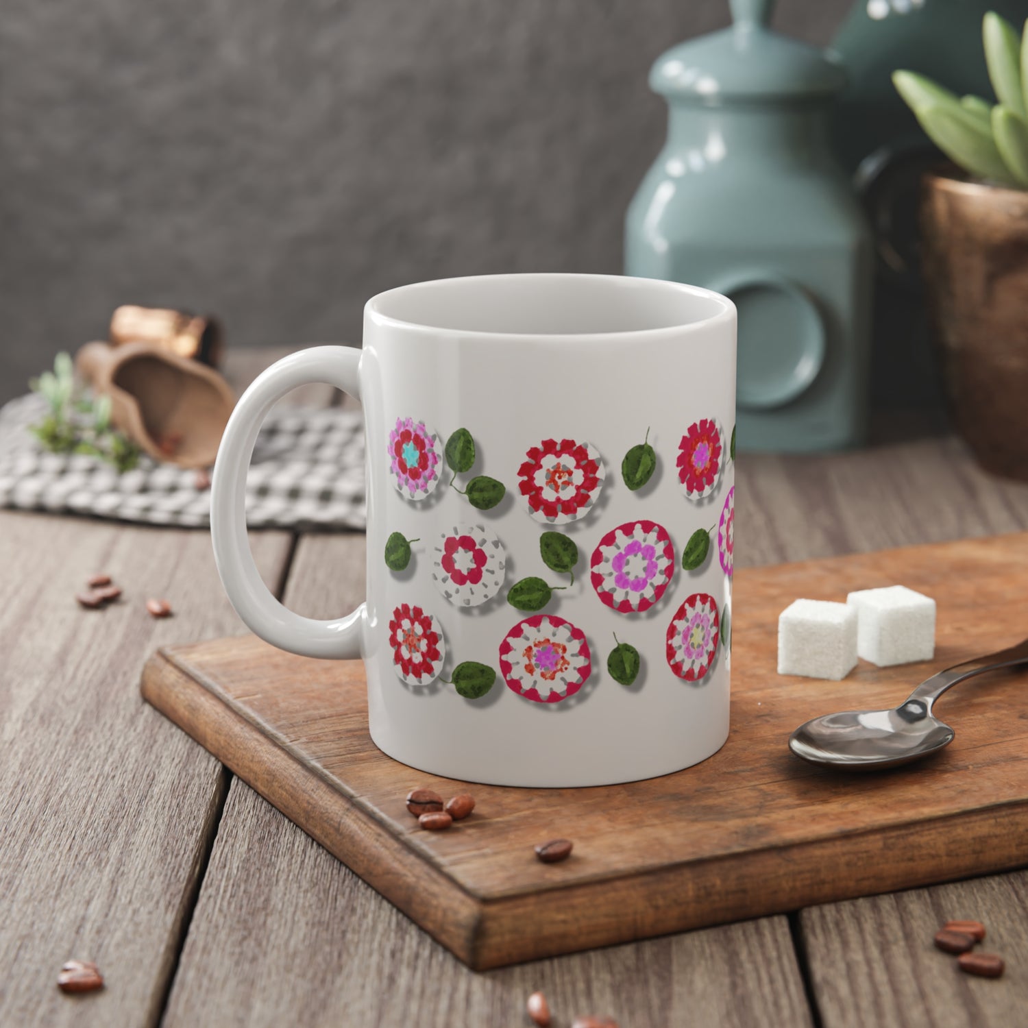 Coffee Mug Design Image--Red Crochet Pattern With Shadow Drop