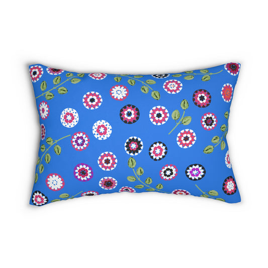 Blue Floral Lumbar Pillow — Crochet Floral Pattern Print