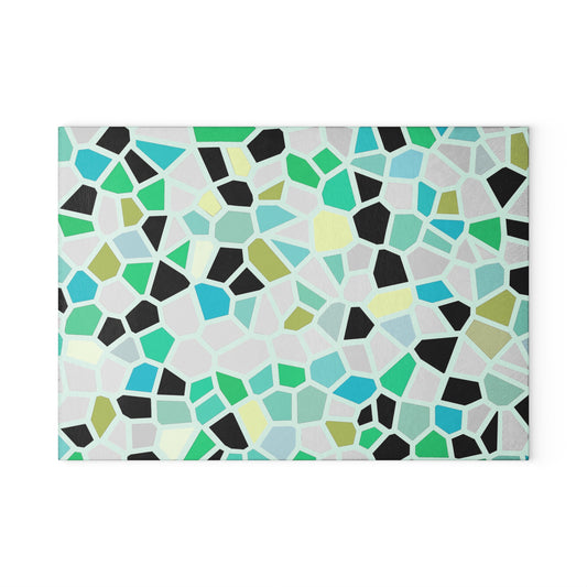 Mint Mosaic Geometric Tile Pattern Tempered Glass Cutting Board