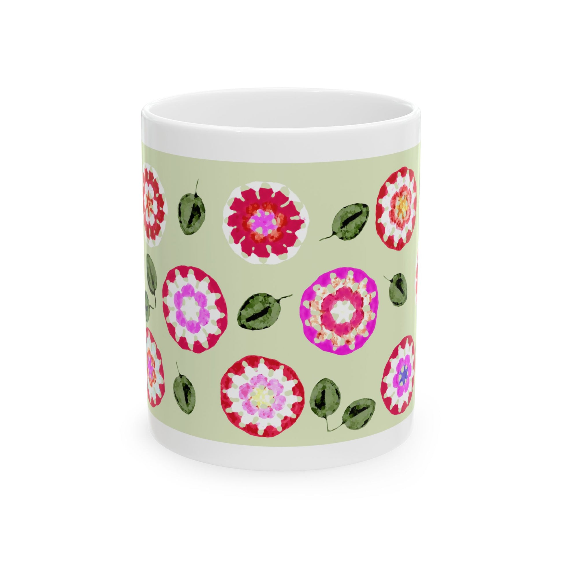 The bright colours and elegant design make the mug a perfect addition to any kitchen or office space.
