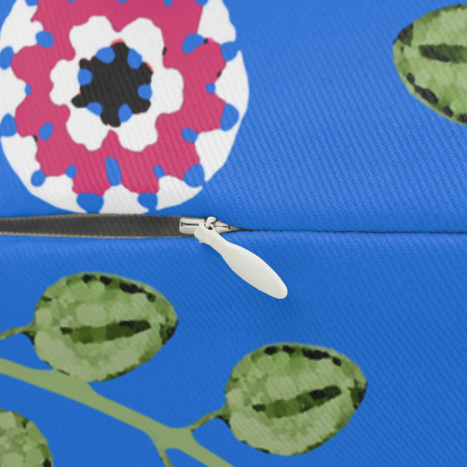 Blue Floral Lumbar Pillow — Crochet Floral Pattern Print