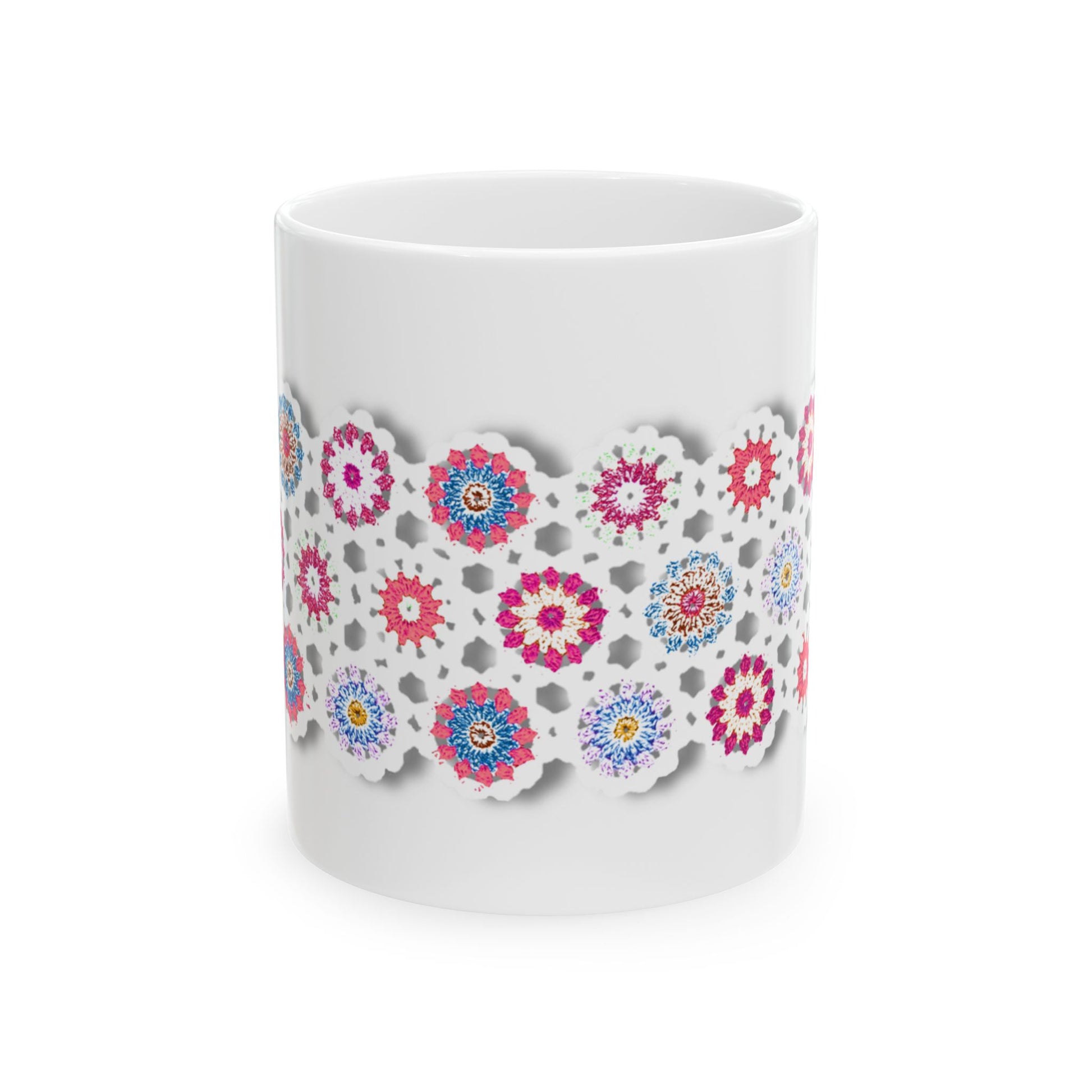 Coffee Mug Design Image-- Crochet Pattern In Red And Blue With Shadow Drop